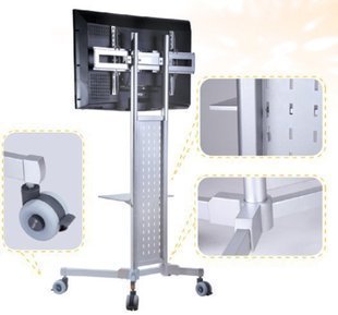 性能/优点:外观简洁,安装方便,灵活性大,安全性高,托盘挂装方便,易于移动,无需拧旋钮就可保持电视的任意段斜角度(正负15度),可上下移动,是一款简洁轻便型的平板显示器移动支架。
