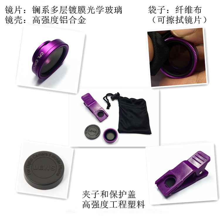 镜头和夹子颜色:黑色,银色,红色,金色,紫色,绿色,蓝色,可特订颜色。