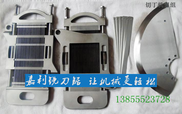 嘉利锐刀锯公司食品机械350型550型切丁机刀片,切丁机刀片是肉类制品生产制作工艺中的一个重要设备。将肉块,脂肪等主要原料,切割成用户所需要的肉丁,调整刀栅的尺寸可切出肉丝、肉片。肉丁尺寸的大小由刀栅中刀片数量来决定。本厂生产的350型和550型切丁机适用于大,中,小型肉类食品加工厂,也可按用户提出的要求,制定生产特殊工艺要求的产品。
