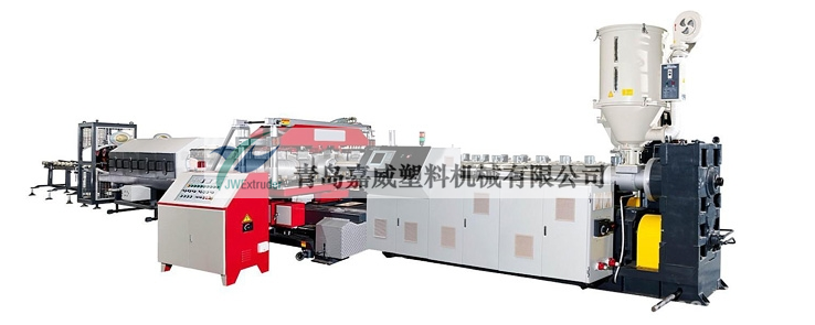 成型机及模具: 成型机及机头精度高,模块互换性好,模块冷却方式有水冷和风冷两种,可以实现在线扩口,确保成型管材的各项性能指标,环形双刀切割机具有优异的切割精度,整条生产线采用西门子人机界面控制系统,具有很高的自控 功能。