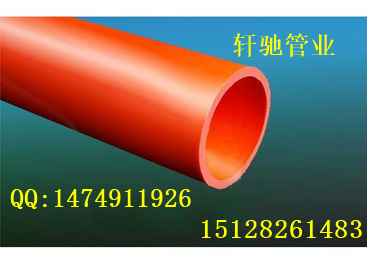 PVC电力管说明: 【* 材料特性:埋地式高压电力电缆保护管以耐热、绝缘性能优异的CPVC树脂为主要材料,是目前公认的绿色环保产品,内、外壁光滑平整,颜色呈桔红色,色泽明亮、醒目。