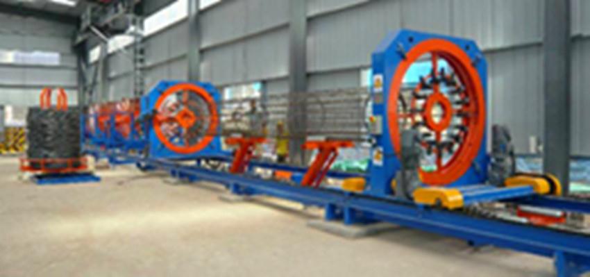 全自动钢筋笼成型机可自动一次性加工成型长度为12-27米钢筋笼。根据施工要求,钢筋笼的主筋通过人工穿过固定旋转盘及移动旋转盘转动把绕筋缠绕在主筋上(移动盘是一遍旋转一边后移),同时进行焊接,从而形成钢筋笼。该设备采用可编程控制器进行动作控钢筋笼滚焊机制,伺服动力系统为整机提供动力,设有液压辅助回转支撑机构和全自动焊枪,根据程序指令焊接,能够实现全自动焊接。