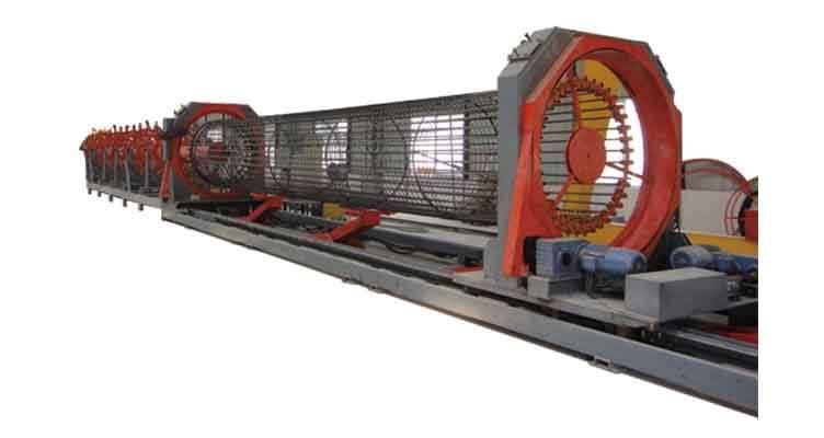 全自动钢筋笼成型机可自动一次性加工成型长度为12-27米钢筋笼。根据施工要求,钢筋笼的主筋通过人工穿过固定旋转盘及移动旋转盘转动把绕筋缠绕在主筋上(移动盘是一遍旋转一边后移),同时进行焊接,从而形成钢筋笼。该设备采用可编程控制器进行动作控钢筋笼滚焊机制,伺服动力系统为整机提供动力,设有液压辅助回转支撑机构和全自动焊枪,根据程序指令焊接,能够实现全自动焊接。