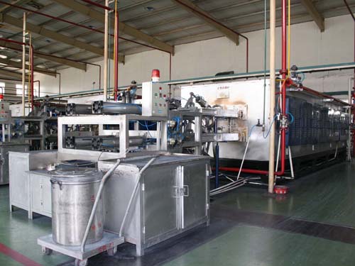 粉末冶金四管还原炉是将氧化钨、氧化钼通过一定的温度、时间、炉内气温控制,以氢气为还原性气体,将氧化钨、氧化钼还原成钨粉、钼粉的生产设备,是一种用途比较广泛的炉型。粉末冶金四管还原炉具有产量大、制钨、钼料粒度均匀(与13管、11管、14管比较),节省氢气与能耗低等优点,适用于中国国情。砌炉除采用基础砖和托架管用异砖。筑炉简单,四炉管共炉腔,温度场均匀,减少电耗,提高了产品质量,克服了炉管温度分布不均而引起粒度不均匀的缺点。