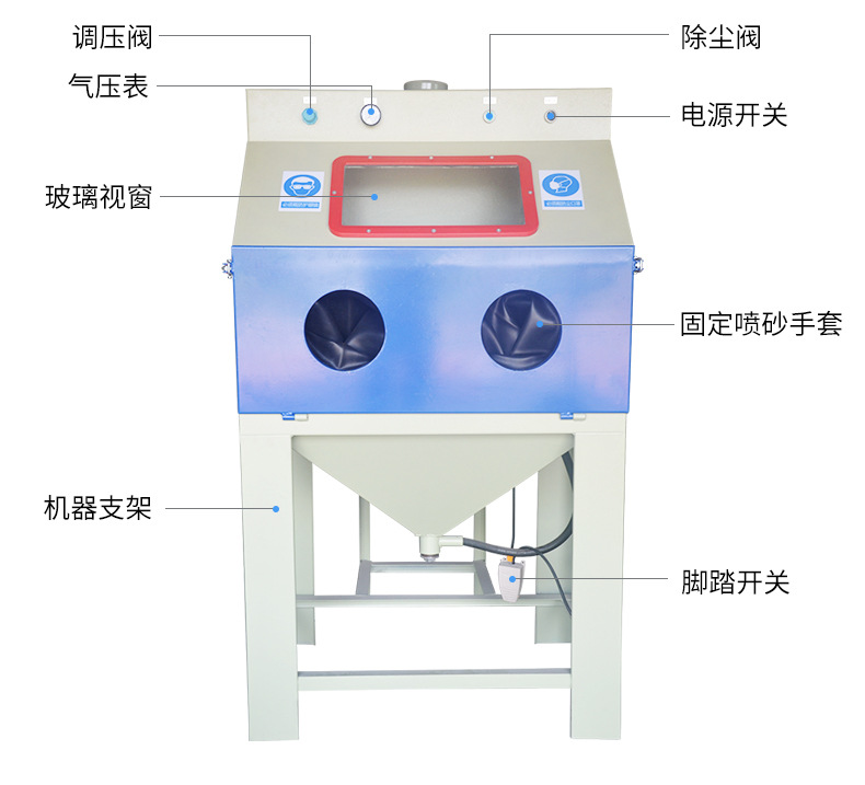 5、 恒温发热装置:能在喷砂过程中自动干燥磨料,使您免受磨料潮湿之苦。