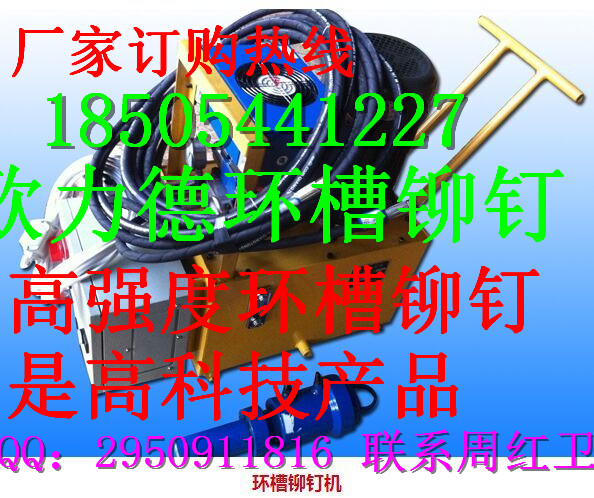 我公司生产的;90液压环槽铆钉机可同时铆接20毫米及16毫米两种冷铆机,真正实现了一机两用,YX-75液压环槽铆钉机可铆接12.7毫米冷铆钉.