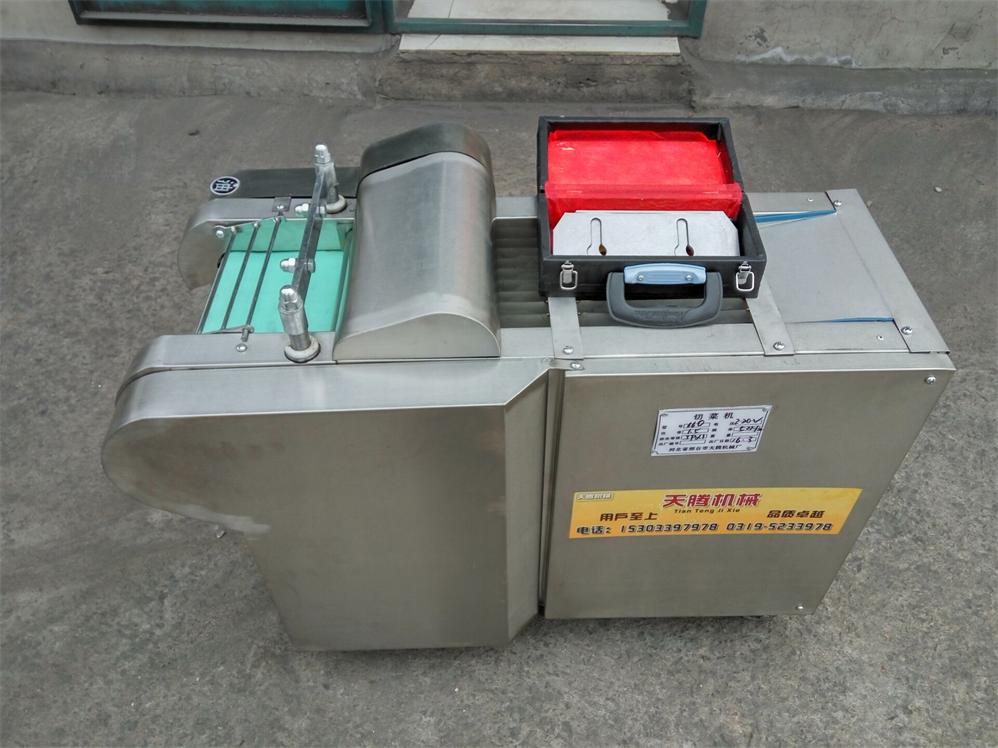 我厂是从事炊具机械生产和销售多年的单位,多年来始终保持在行业中的领先地位,生产的设备安全耐用,质量可靠,欢迎购买。 产品描述: TQC1000切菜机采用输送带自动将辣椒输送到刀口模拟手工完成切圈、切段工作,长度通过“可调偏心轮”在一定范围内任意调整。竖刀部分可模拟手工切菜原理将蔬菜加工成不同规格的块、丁、菱形、曲线等各种形状,所切蔬菜加工表面光滑,成型规则,被切组织完好,保持新鲜。适用于大型农贸市场、个体加工户、辣椒产区,并是大、中、小型辣椒深加工企业的必备机械设备。