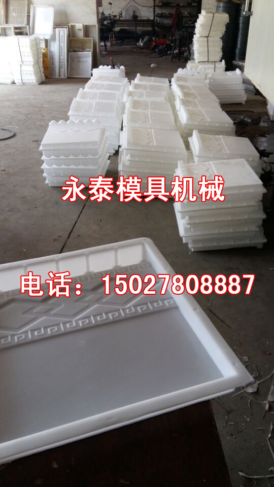 清苑县永泰模具机械加工厂 水泥檐子板模具,创建于1992年,是专业彩砖、护坡模具、彩瓦塑料模盒,井盖模具 水泥房檐遮板模具,高速铁路盖板模具,建材模具 模具,水泥制品模具,混凝土预制件模具,高速铁路公路水泥预制件模具,桥梁,隧道盖板模具,河道、堤坝护坡盖板模具,水池、水渠、护栏、围栏、隔栏等模具。彩砖模具,彩瓦模具,路沿石模具,井盖模具,路沿石侧排水模具,排水井盖模具,污水井盖模具,通信井盖模具,水泥井盖模具草坪模具,河道护坡砖塑料模盒的生产厂家。
