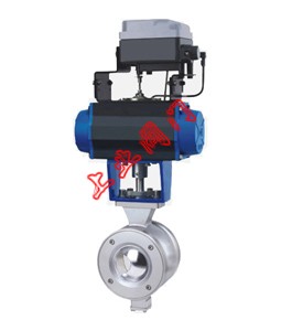 V型球阀是引进国外先进技术制造的一种新型球阀。采用板簧加截的可动阀座结构,阀座与球体不会产生卡阻或脱离等问题,密封可靠,使用寿命长。V型切口的球芯与金属阀座之间具有剪切作用,特别适用于含纤维、微小固体颗粒及料浆等介质。
