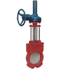 Z573X-6、Z573X-10 型铸铁锥齿轮传动对夹式浆液阀:锥齿轮传动、对夹式连接形式,明杆平行式刚性单闸板,阀座密封面材料为合成橡胶或聚四氟乙烯,公称压力 PN6~PN10,阀体材料为灰铸铁的平板闸阀(浆液阀)。