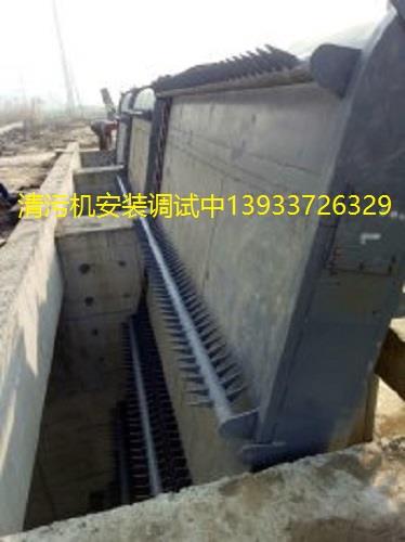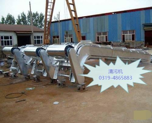 耙齿链运转到设备的上部时,由于槽轮和弯轨的导向,使每组耙齿之间产生相对自清运动,绝大部分固体物质靠重力落下。另一部分则依靠清扫器的反向运动把粘在耙齿上的杂物清扫干净。