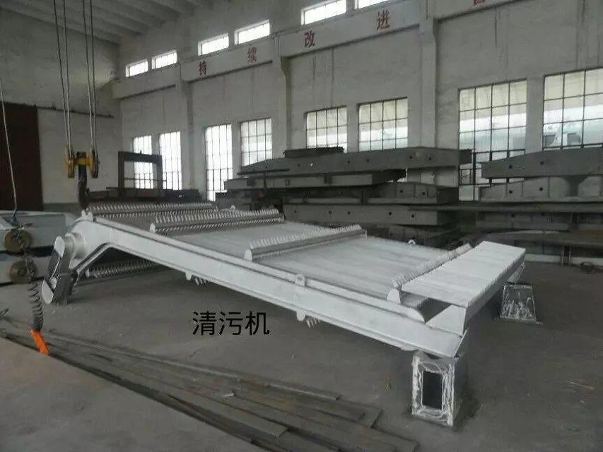 回转式清污机是将拦污和清污结合为一体的固定式连续清污设备。回转式清污机主要由栅体、清污耙(齿耙)、传动系统三个部分组成;根据引水道底污物情况,有时在栅体底部增设辅助栅。