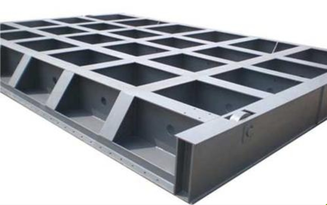 闸框是闸板的支承构件,也是闸板的运行滑道,由地脚螺栓安装固定在水闸闸墩及闸底板的二期混凝土中,将闸板所承受的全部水压力安全传递到闸室中。为科学合理节约材料及减轻自重,其断面制成格构式,断面尺寸按所受荷载大小和闸板运行情况综合考虑。闸板是用来封闭和开启孔