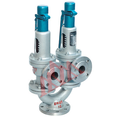 双联弹簧式安全阀适用于工作温度≤350℃的蒸汽、空气等介质的设备和管路上。当设备和管路内压力超过允许值时,阀门自动开启,继而全量排放,当压力降低到规定值时,阀门自动关闭,保证设备和管路的安全运行。 ‘’该阀门是在一个Y型接头上装设两个同样型号规格的安全阀,其公称通径是指Y型接头进口通径,组合情况如下:主要部件材料说明:A38Y、A43H、A37H型安全阀除三通材料为WCB外,其余零件的材料均和A47H、A48Y型弹簧式安全阀相同。而当容器内的压力降至正常操作压力时,即自动关闭避免因容器超压排出全部气体,从而造成浪费和生产中断。 双联弹簧式安全阀是为了防止压力设备和容器或易引起压力升高或容器内部压力超过限度而发生爆裂的安全装置。安全阀是压力容器、锅炉、压力管道等压力系统使用广泛的一种安全装置,保证压力系统安全运行。 当容器压力超过设计规定时,安全阀自动开启,排出气体降低器内的过高压,防止容器或管线破坏。安全阀主要由阀座、阀瓣(阀芯)和加载机构三部分组成。阀座有的和阀体是一个整体,有的是和阀体组装在一起的,它与设备连通。阀瓣常连带有阀杆,它紧扣在阀座上.