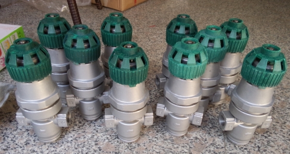 减压器与角阀是以反扣相连的。上减压器时要用一只手托平阀体,将手轮对准角阀出口丝扣,用另一只手反时针方向旋转手轮,直至减压阀不左右摇动为止。