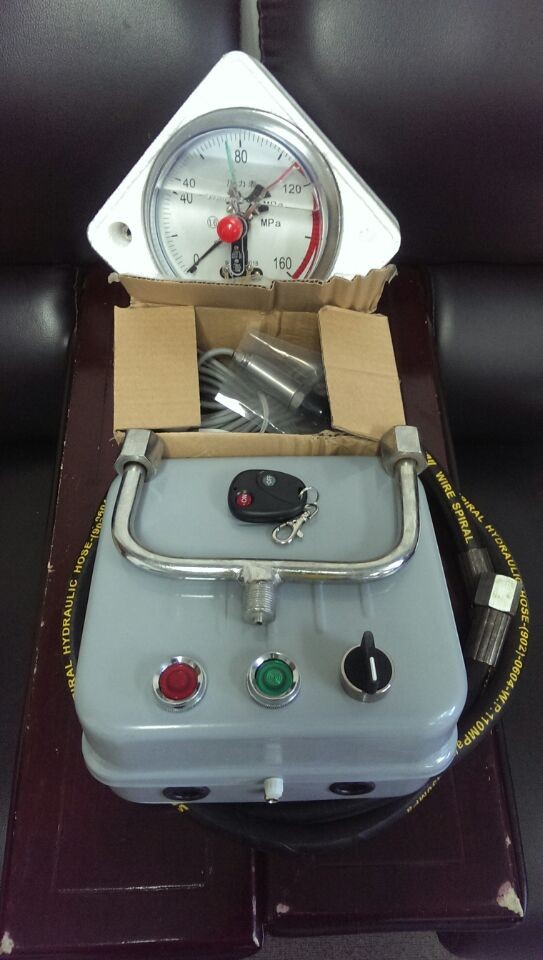 40Mpa以上的试压泵试验压力较高,因此,我公司的40Mpa以上的高压试压泵均同时具备压力自控、压力遥控两种功能。压力遥控试压泵是指100米以内对试压泵进行遥控启动或遥控停止的功能,40Mpa以下的试压泵也可根据客户要求安装并赠送遥控自控功能,因为彻底保证使用者、用户的安全是我们的责任。