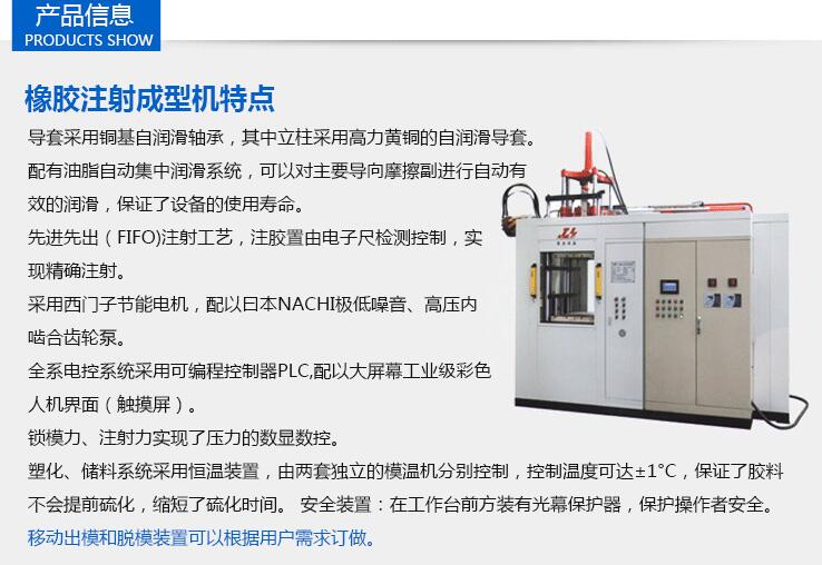 设备,专业的研究人员。技术力量雄厚,工艺精湛,检测手段齐全。采用先进的企业经营理念,一流的生产设备和技术,严格遵守Iso9001质量体系。并以对客户高度负责的精神,诚信求实的态度,可靠的产品质量,高水平的技术和管理赢得了客户信任。专业产橡胶注胶机,橡胶注射机,橡胶注射机械,橡胶注射成型机,油缸,气缸和液压泵站等产品,高压胶管,金属软管总成及各种密封橡塑制品。广泛用于工程机械,钢铁冶金,矿山,化工,船舶,汽车等行业。