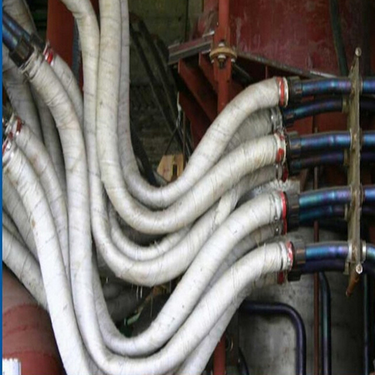 石棉橡胶管由高密度石棉布,橡胶外层胶,天然或合成纤维增强层和橡胶内层胶组成,适用于钢铁,铁合金电炉冶炼等高温区冷却水的输送