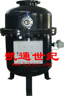 3、多相全程水处理器的结构特点:由优质碳钢筒体和特殊结构的不锈钢网组成,配以自动换向系统、自动排污系统、电器及功能转换元件。其过滤单元分为主过滤腔、反洗过滤腔、排污腔、和重颗粒收集腔。该机设有两个排污口,排污腔出口设有电动排污口,接受电信号后自行排污,是主排污口;另一个排污口设在机器底部,由手动排污,每个采暖季排污2-3次。
