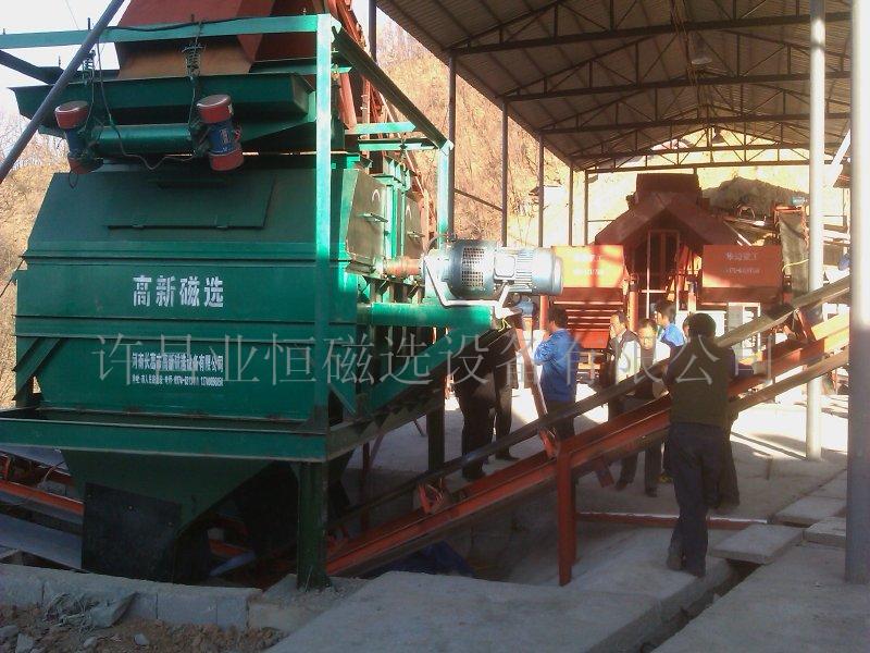 我公司努力秉承二十年的机器制造的经验,紧紧依靠敢于探索的技术队伍,积极推行低碳环保新理念,广泛使用数字和变频技术,着力于干式磁选机的研究、开发和应用,走出了一条低品位磁铁矿干选的新路子,真正实现了不用水、无污染、不聚团、分选净、抛尾少、品位高、成本低的极佳效果,已经获得了三项国家专利(专利号为 :ZL 200620032168.1、ZL 200830151121.1和ZL 200830151122.6),业内专家说:“业恒磁选成功实现了干法磁选的一场革命......”,广大用户说:“业恒磁选性能好、质量好、服务好,成就了我们的创业梦”。2008年先后获得“全国质量放心品牌”“河南质量诚信AAA级品牌企业”“河南技术创新名牌企业”并被中国信息协会指定为干式磁选机示范基地。 优秀的团队造就了高品质的产品,五年来,本公司专利产品遍布全国十八个省市自治区,同时出口伊朗、印尼、墨西哥、智利及我国宝岛台湾,在国际市场上也成为干选行业新潮流。 我公司通过多年的努力,已形成干式磁选机、干式磁选设备、铁矿干选机、贫矿干选设备、河沙干选机、矿石水选设备、反击式高效制砂机、复合式破碎机、锤式破碎机、洗砂机等系列产品。主要分选矿系列和砂石生产线系列