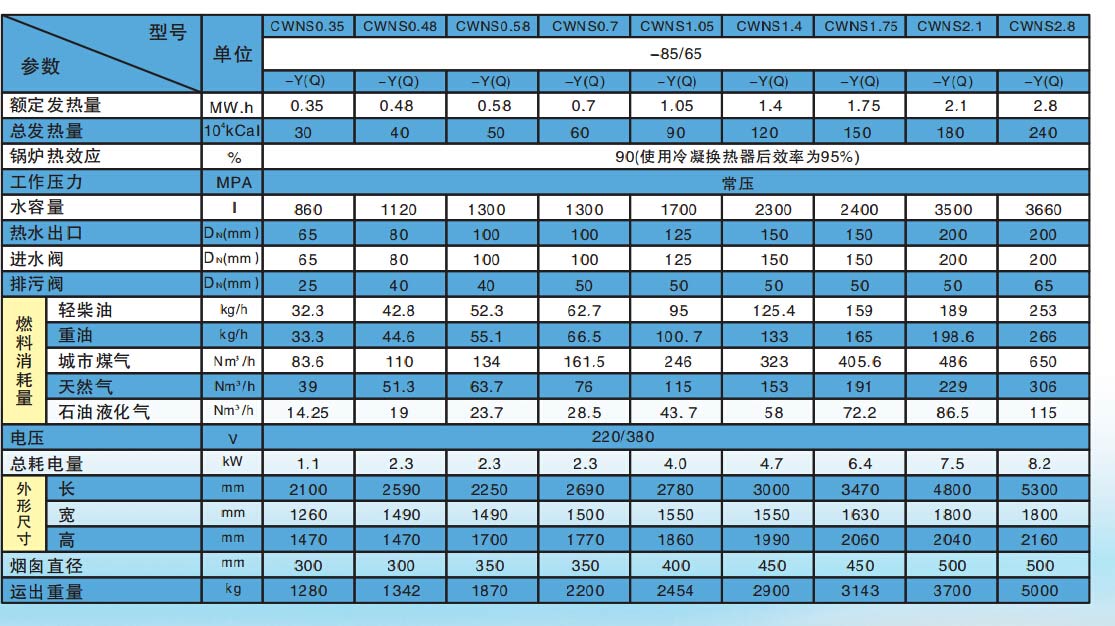 6、卧式燃油燃气热水锅炉为三回程全湿背结构,采用大炉膛、粗烟管设计,增大炉膛辐射吸热量,有效的节能降耗。采用螺纹烟管和波形炉胆,大大加强了传热效果,大大的节省了燃料耗量。