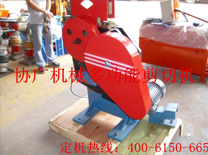 多功能剪切机,角钢剪切机产品特点:本机设计合理,造型美观,结构紧凑,性能稳定,体积小,重量轻,一机多用,操作灵活,使用维修方便,广泛用于剪板、剪型材、冲型材、冲孔和模剪。实为机械制造业、建筑业、水电业、手工业等广大冲剪型材的灵巧设备。