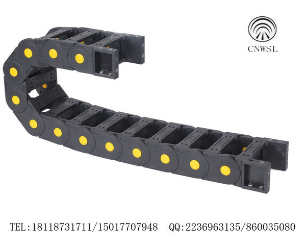 本公司拖链全部采用全新尼龙66材质,耐磨、柔韧性都非常好,公司承诺质保三年,一年包换