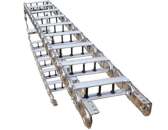 我们所生产的钢制拖链,美观,坚固经久耐用。优点是不下垂。有的已10年之久还在正常使用,多达上百种型号,适用各种重型数控机械的油管,气管,电缆,支撑移动。露天使用也是钢制拖链的强项,抵御雨雪暴晒等恶劣气候。