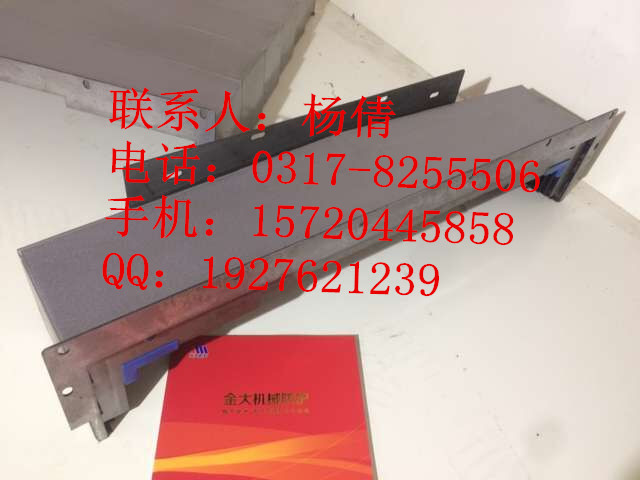 定制大立720护板、大立加工中心护板、MCV720护板认准盐山金大,我厂可根据运行速度及导轨的不同我们所研制的防护罩结构也不同。运行速度10m/min之下的我们装有聚安脂或黄铜滑块。中等速度30m/min之下的我们装有滚轴。另外驱动板、刮屑板及吸屑板之间还需要用缓冲系统。滑块缓冲系统的目的是减少碰撞、噪音及摩擦。
