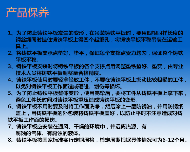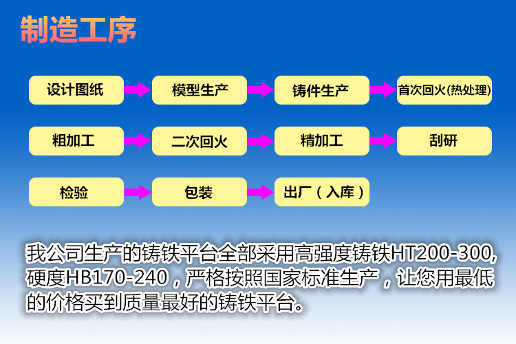 精度不能保持;或因刮削困难得不到数值小的粗糙度。因此使用铸铁平板必须注意铸铁材料的选择,采用时效处理等方法