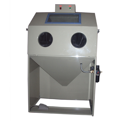 ·本机为普压箱式干喷砂机,采用手动操作控制方式,适合于小批量生产(按照以上规格产品计算,工时10小时,材质为铁件,表面处理要求为除锈,清理等级Sa2.5级以上,六个外表面全部处理,产量大概在300~500件左右);产量的变化依据锈层的深浅、工人操作的熟练性、上下工件的速度与所选用的砂料的好差。