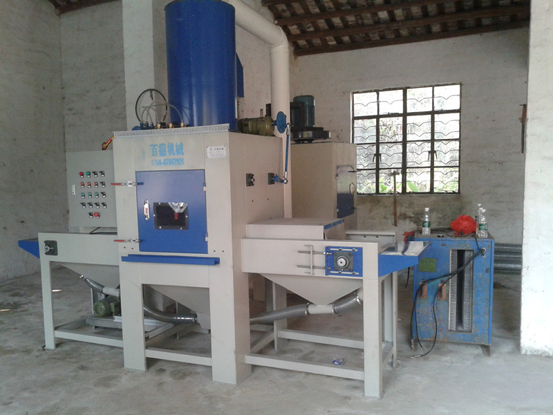 输送式自动喷砂机也叫平面式自动喷砂机、流水线喷砂机。他是一款高产量的自动喷砂机,需要喷砂的产品放在左侧,自动输送带会将喷砂的产品自动带入喷砂室自动喷砂,喷砂完成后,输送带把产品带入吹净室自动吹干净,最好输送带自动将产品带出,人工将产品取出。整道工序是自动连续完成。用户也可以根据工厂的实际情况,比如配上流水操作,这样的话,整道生产工序可实现不需要人工操作方式。