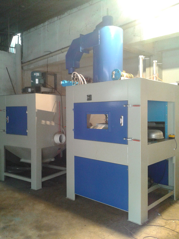 整个喷砂机系统包括喷砂主机、除尘器与旋风分离器三个部分,整机设计科学合理,三大部分自成一体,机体小巧,协同工作,性能优越,配备的细砂旋风分离设备与除尘器并排背焊于喷砂机主机背后,最大限度节约所在空间,该部分在工作过程中安全环保,自动回砂,能将喷砂过程中产生的粉尘与可再利用的砂料进行很好的分离,最大限度地减少磨料的损耗。另外机器在使用180目以上的细砂料时,将会出现砂料受潮而出现堵枪、堵管等不出砂现象,这时可选择加装自动烘干装置,在喷砂作业过程对砂料进行自动烘干从而避免细砂磨料受潮所带来的堵塞砂管、影响喷砂效果的烦恼。可根据客户的要求的尺寸制作。