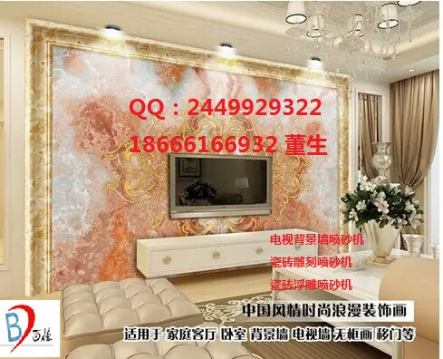 瓷砖背景墙上的雕刻图案用什么工艺做的,需要哪些设备? 瓷砖背景墙的工艺大概是这样的,把客户要的图案出一个模版(刻模纸),把模板贴在瓷砖表面然后用喷砂机喷砂,这是雕刻图案的一个重点步骤,需要雕图案的地方已经在刻模纸上做好了。喷完砂,揭掉模板,再用机器上颜色,也就是通过电脑和打印设备把图案输出到瓷砖上。这样,已经瓷砖表面就有颜色了,已经雕刻过的图案本身具有颜色的话,经过这个步骤,也会有颜色的。这就是现在很流行的雕刻瓷砖背景墙的加工流程。