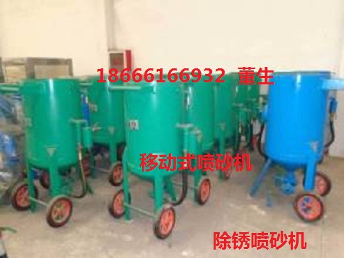 移动式喷砂机是一种能使用磨料(金属磨料和非金属磨料)借助压缩空气动力,喷射到工件表面的一种机械设备。将磨料喷射到工件表面进行冲击研磨,把表面的杂质、杂色及氧化层清除掉,同时使介质表面粗化,使基材表面残余应力和提高基材表面硬度的作用。
