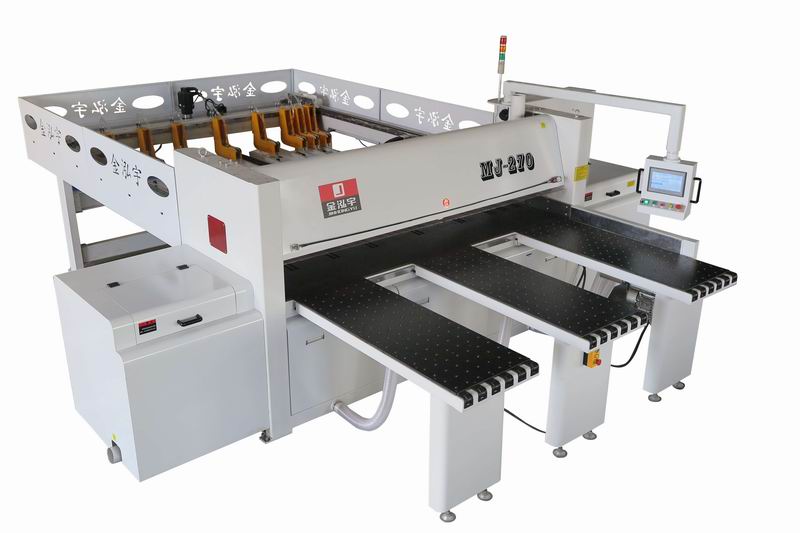 选择金泓宇电子开料锯的五大优势;1、为您节省了人工成本 电子开料锯是一款自动开料的机器,只需将需要裁剪的数据输入机器显示屏能即可进行裁剪,完全不用师傅来操作,生手即可上岗开料,并且一台电子开料机可低三台推台锯,大量的节省了人工成本。2、为您提高了板材利用率 金泓宇电子开料锯可配置板材优化系统,将单料数据导入电脑后可对其进行自动优化整合,板材利用率可高达90%,机器的余料管理系统可对剩余的边料,余料进行动态跟踪,方便日后使用。3、为您提高了生产效率 机器自动开料过程中无需人工, 自动送料,自动裁剪,锯车自动前进后退反复裁剪可连续进行裁剪,裁板厚度可达80mm,实际裁剪速度可达60m/min,是一般电子锯效率的5倍,4、为您稳定了生产品质 金泓宇电子裁板锯的锯切精度高达 ±0.01毫米,进口研磨级别齿条每米0.03毫米的误差,全程3米累计误差不超过0.1毫米使用行星减速机传动,不需要电子尺补偿,长期保证锯切精度,高精密行星减速机,能长期保证精度。5、为您避免了事故费用 这是不需要人工锯板的,可以避免伤手的事故,而且机械手具有 快 准 的效果5、您的综合实力提高了 选择金泓宇电子裁板锯的理由机体结构扎实,永不变形,台面使用25mm厚的钢板加工而成,整机近6吨重,跟国内一流品牌机器的重量一样,机体结构合理,长期保证精度;机械手定位不使用电子尺补偿数据,通过机械性能长期保证精度购机15天无忧退换;本公司郑重承诺机械三包政策,15使用不满意均可退换。没有服务是最棒的服务;稳定、耐用压倒一切!