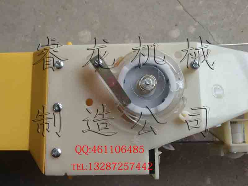 该器辕籽轴活动塞可调整能够适合各种籽粒大小以及发芽率高低的玉米品种,可根据所用种粒的大小,选配合适的排种轮轴。调整下种量时,可选单粒、双粒、三粒不等(根据有些用户的需要配装一个能播一、二粒循环轴,达到某些种子播种的最佳效果)。在种箱无种时,盖上箱盖,将机器倒置,松动自攻钉旋钮,调整旋钮至相应种数位置,再将自攻钉拧紧。注意箱底部有种时不可旋转,以免损坏翻动隔板。