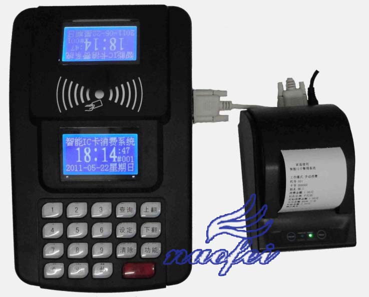 5、 显示方式:双面10位LED数码显示,可以显示9999.9元,最多刷卡一次可以扣除9999.99元。