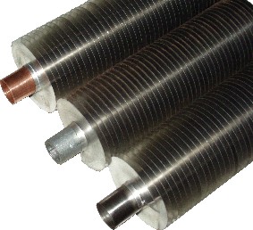 双金属轧制翅片管(E型翅片管):复合翅片管是由铝管和其它金属管整体轧制而成,无接触热阻,传热性能好,防腐蚀性能高,流动损失小、耐热震和机械震动,热膨胀性能好,且具有可观的扩展换热面,用这种翅片管制成的换热器,效果领先于串片或绕片等其它型式的散热器。采用专用设备在铝管上轧出翅片,管片接触压力大,是绕片管的4倍,介质许用温度可达350℃,有较强的抵抗大气腐蚀能力和耐热冲击能力。