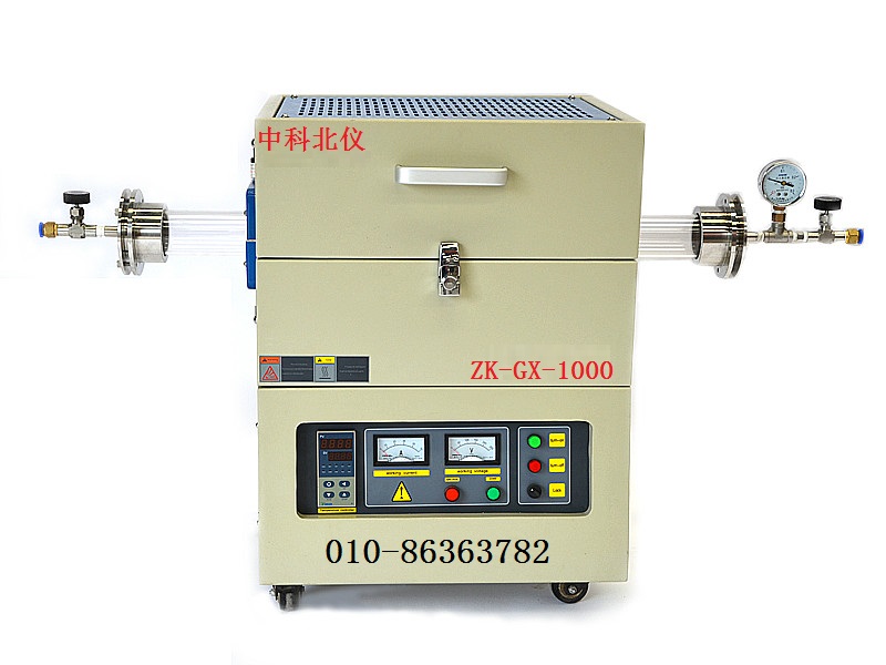 ZK-GX-1000系列管式炉采用高纯石英管或高纯氧化铝管作为炉管,工作温度区间30℃至1000℃,客户可根据实际需要选购。该系列设备的控制系统国际领先,具有安全可靠,操作简单,控温精度高,保温效果好,炉膛温度均匀性高,可通气氛抽真空等特点,广泛应用于高等院校,科研院所,工矿企业等实验和小批量生产。 真空管式炉以含钼电阻丝为加热元件,采用双层壳体结构和智能化程序控温系统,移相触发、可控硅控制,炉膛采用氧化铝多晶体纤维材料,双层炉壳间配有风冷系统,能快速升降温,具有真空装置,可以通气氛抽真空,真空泵可以根据客户要求的真空度选配,该炉具有温场均衡、表面温度低、升降温度速率快、节能等优点。