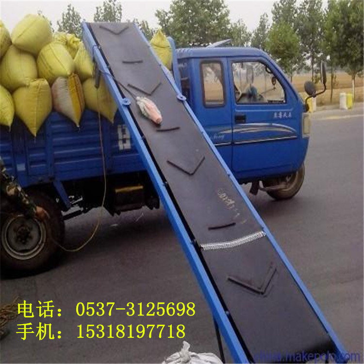 粮食装车用皮带输送机是一种工效高,使用,机动性好的连续输送装卸设备.主要用于农场中,用来短途运输及装卸散料.把地上的散料,小麦、玉米、大豆等粮食装入车中。该输送机可以移动,适合农场中粮食装车地点不固定的现象。我厂生产的皮带输送机输送平稳,粮食与输送带之间没有相对运动,能够避免对输送粮食的损坏。
