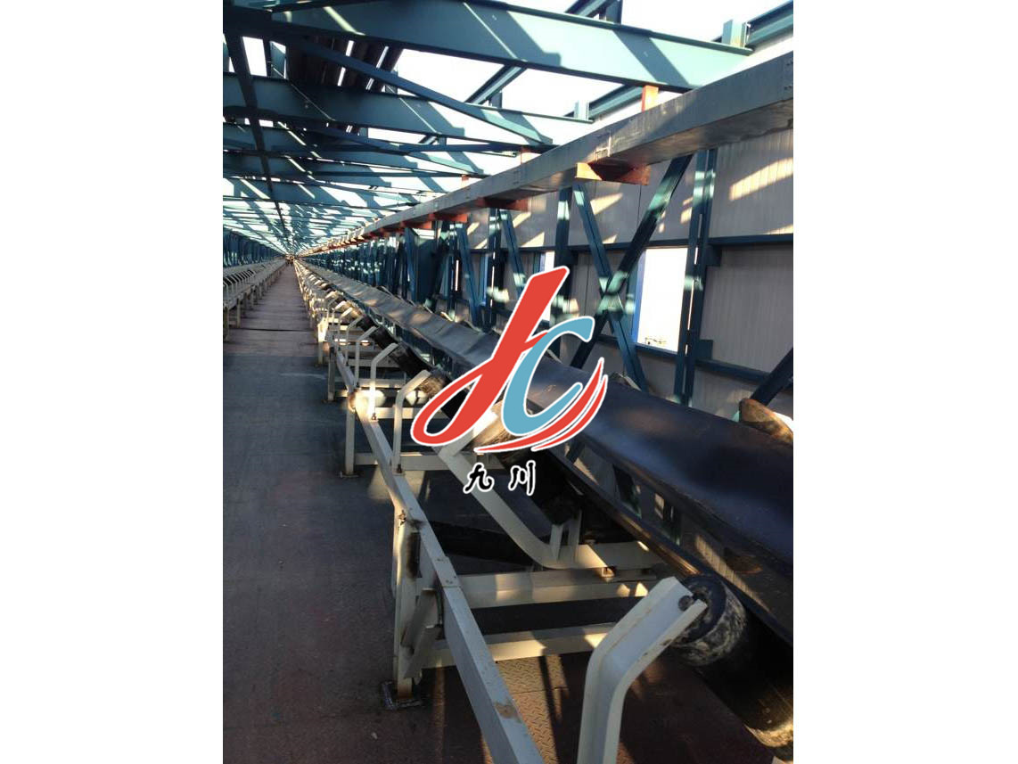 淄博九川橡胶有限公司经营的输送带系列产品有普通输送带、整芯阻燃输送带、钢丝绳芯输送带、EP耐高温输送带、耐热输送带带、聚酯输送带、尼龙输送带、环行输送带、花纹输送带、耐酸碱输送带、挡边输送带、橡胶止水带、耐油输送带、食品输送带等。