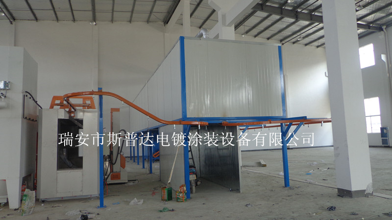 工艺流程:打磨手动除尘——上件——喷涂前处理——脱水烘干——冷却——喷漆(或喷粉)——恒温固化——冷却——下件。广泛适用于五金、灯饰、电器、汽车零部件等行业