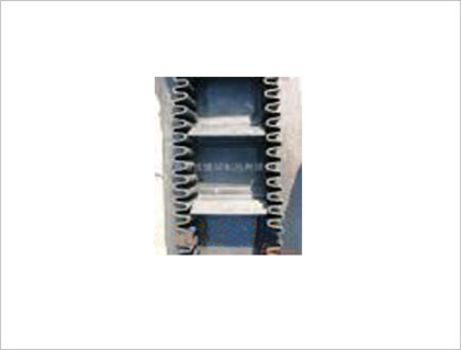 大倾角波状挡边带(挡边输送带、普通输送带) http://www.fcshusongdai.com/ptvw107.html 由基带、挡边、横隔板3部分组成。挡边起防止物料测滑撒落的作用。为便于绕过滚筒,档边设计成波纹状;横隔板的作用是承托物料,为了实现大倾角输送,采用T型TC型。档边和横隔板是用二次硫化的方法与基带连接的,具有很高的连接强度。