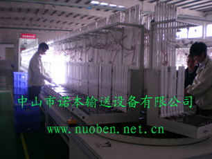 8. 导电系统:在老化小车下沿线体架每侧配装有三路(零、火、火线)导电槽,双边沿线布置。