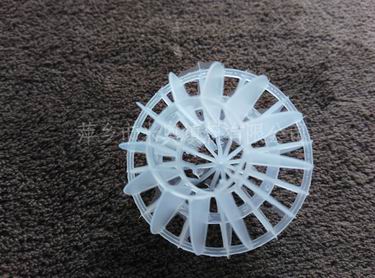 多面空心球填料是由二个半球合成一个球形,每个半球由若干个半扇形叶片组成,多面空心球由两个半球的扇形叶片又相互错开排列。塑料多面空心球填料的优点是填料的比表面积较大,如Dg50的多面球形填料,其比表面积可达200m2/m3以上。塑料多面空心球填料用于污水处理,发电厂水处理脱CO2设备、脱硫、净化塔及接触反应塔等装置。多面空心球是水处理设备中广泛采用的一种新型高效塔器填料,多面空心球适用于多种水处理设备中装填。多面空心球广泛用于国内电力、化工、造纸、环保等到行业在脱碳等装置中使用。