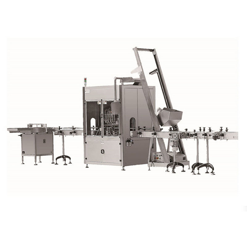 GHR-DC四泵液体灌装(轧)旋盖一体机是我公司适应市场需求,引进国外先进技术开发之实用型产品。该机采用容积式柱塞泵执行灌装,装量精度高,使用寿命长,耐高温、耐腐蚀,该机集灌装、旋(轧)盖一体,适用于制药、食品、农药、日化、化妆品等液体灌装旋(轧)盖,经济实用占地面积小。采用容积式柱塞泵执行灌装、精度高、调节剂量范围大。采用低位贮液桶,整机清洗、消毒方便。缺瓶不灌装,自动计数功能。灌装系统设定缩水功能,无滴漏。适用各种粘度液体灌装。灌装针头潜入瓶底灌装、缓慢上升,防止起泡。灌装、旋盖一体,经济实用占地小。磁力矩旋盖头,松、紧任意调节。整机按GMP要求设计gzjdt02jx。