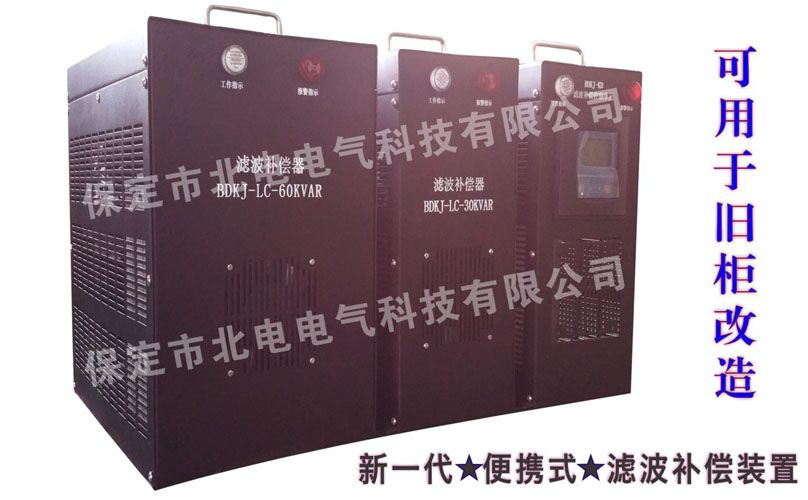 BDKJ-LC便携式滤波无功补偿单元适用于中高频加热、直流电机驱动、变频器电机驱动、整流逆变电源等需要抑制谐波补偿无功功率的场合,该单元装置采用综合智能控制,通过采集负载的运行参数,精确计算投切滤波补偿功率单元,实现无功功率的精准快速补偿,有效抑制谐波,使补偿效果达到最佳。便携式滤波无功补偿单元使用方便,便于安装,占地面积小,适合于各种场合的使用。尤其是在改造传统的无功补偿柜中更能体现它的便捷性、实用性等。便携式滤波无功补偿单元分为控制单元+功率单元,单台控制单元可控制多组功率单元。如:800变压器按50%左右容量考虑滤波补偿容量(即左右400KVAR),便携式滤波无功补偿单元可以选择60KVAR功率滤波补偿单元6台,控制单元+20KVAR功率滤波补偿单元1台,总容量为380KVAR。