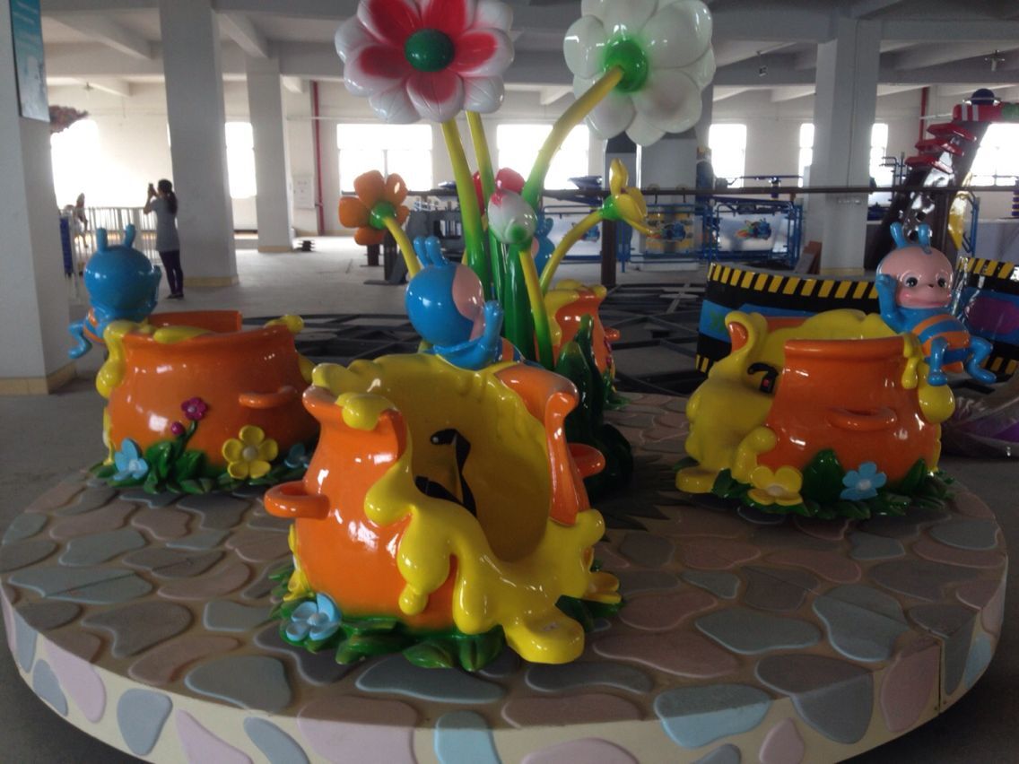 豪华造型的四座蜜罐旋转儿童游艺机,色泽鲜艳,造型奇特,能更多的吸引孩子们的眼球,优质玻璃钢制作,没有任何污染。四座蜜罐旋转儿童游艺机产品广泛应用于公园、超市、景点、社区、游乐场所、幼儿园等场所。
