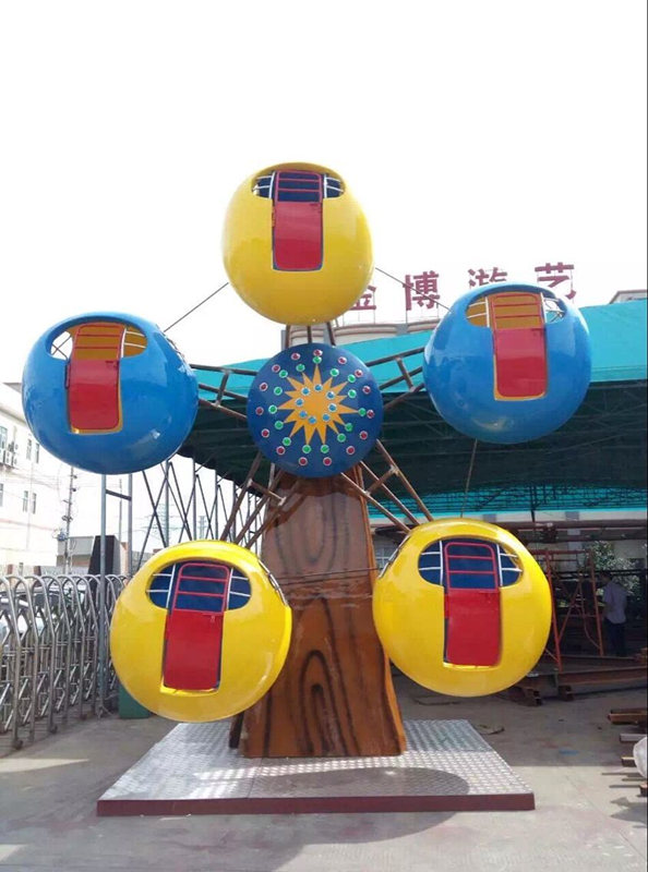 “观览车”一直是旅游景点中用来让乘客上山方便、同时也是使游客们能够在很高的地方,以不同的角度欣赏到景点的美景,非常受到人们的欢迎。 我公司生产的观览车是大型游乐设备摩天轮的缩小版,它是专门为年纪小点儿的人设计的,有单面的、双面的,它的座舱就像是吊篮一样,每个吊篮可乘坐两个人。